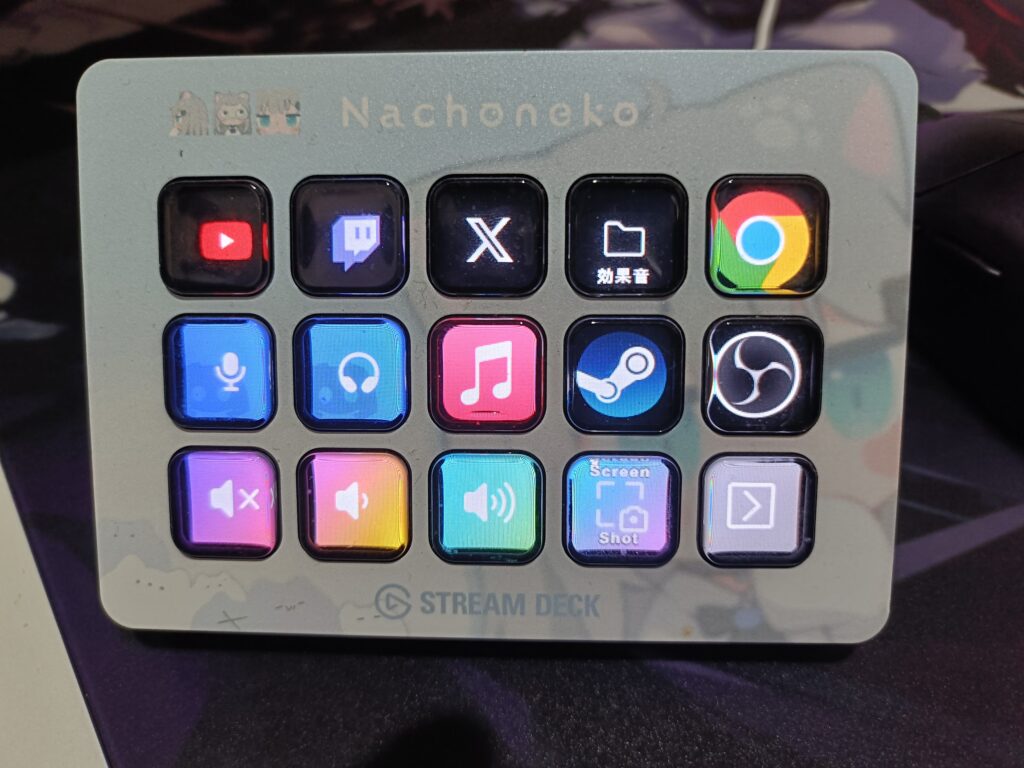 私が愛用しているのは、可愛いイラストがあしらわれた「Stream Deck MK.2 Nachoneko モデル」。 デザインに惹かれて購入しましたが、今では中身の機能性の虜になっています。